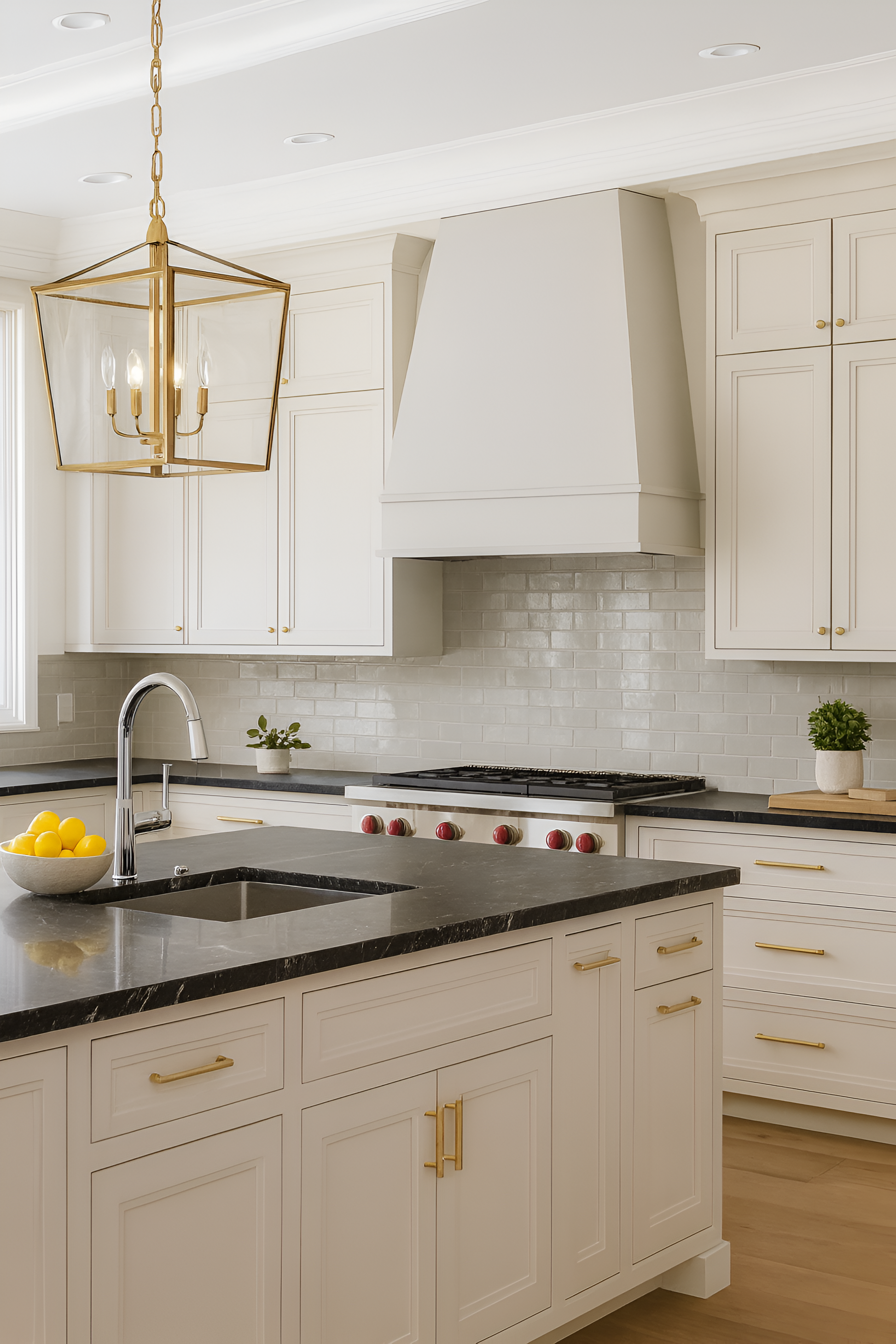 Consider colors that complement your countertops, backsplash, flooring, and appliances. If you have warm-toned granite, consider warm colors. Cool-toned quartz pairs well with blues, grays, or crisp whites.