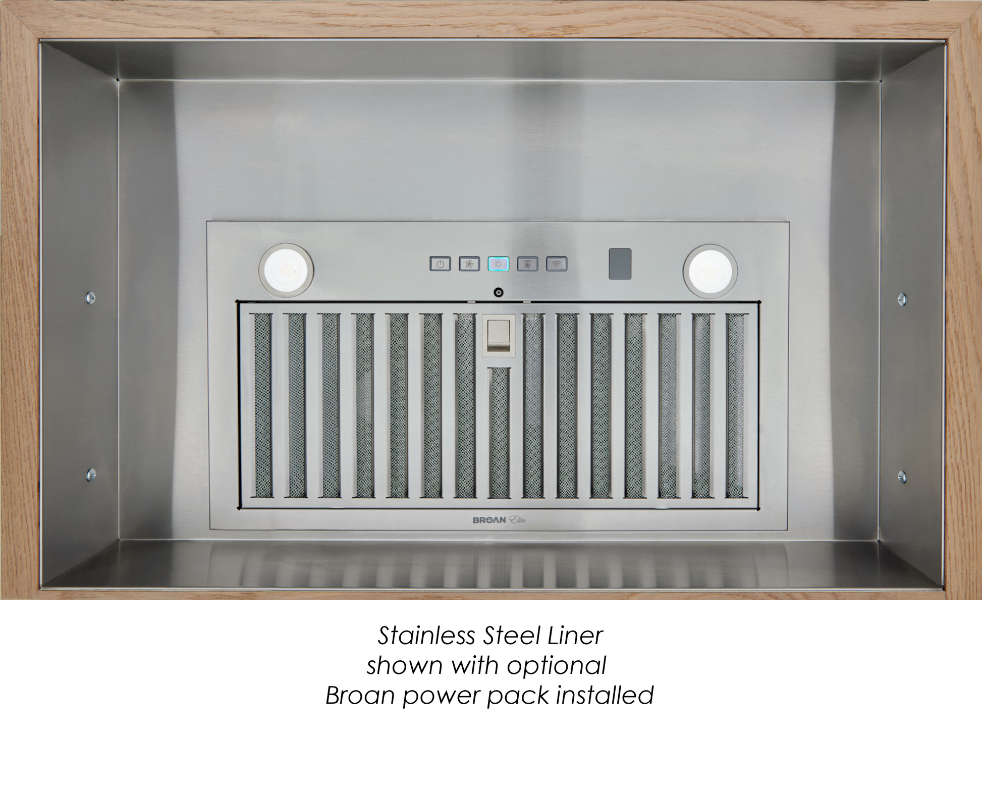 This hood comes with a stainless steel liner already installed. The liner is pre-cut to enable single-person installation of Broan Power Pack blower units.